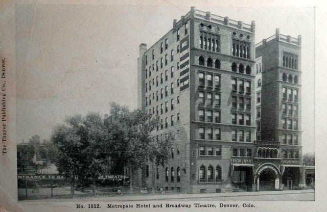 The Metropole Hotel, where Master gave this talk on August 7th, was located at 1756 Broadway in downtown Denver (pictured below circa 1930. It was built in 1891 and was a “significant luxury hotel”, billed as one of the first “fireproof” hotels in the country. It had an ornate “vaudeville showhouse”, whose interior was decorated in East Indian themes. The Metropole was recognized as one of the three grand hotels in Denver at the turn of the century along with the Brown Palace and Savoy. The hotel was demolished in 1984). It is now the site of the Republic Plaza Building.