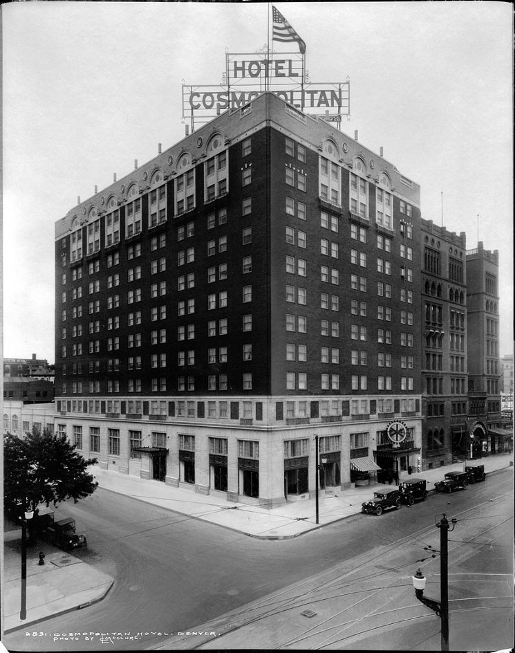 Master arrived in Denver from Colorado Springs on July 26, 1924 to begin his public lectures. While lecturing in Denver during his 1924 visit, Master stayed at the Hotel Irvington, visible on the left in this 1941 photograph (below). The hotel was located at 10 Irvington Place, on the SW corner of Irvington Place and Broadway. The site is now the location of an urgent care clinic.